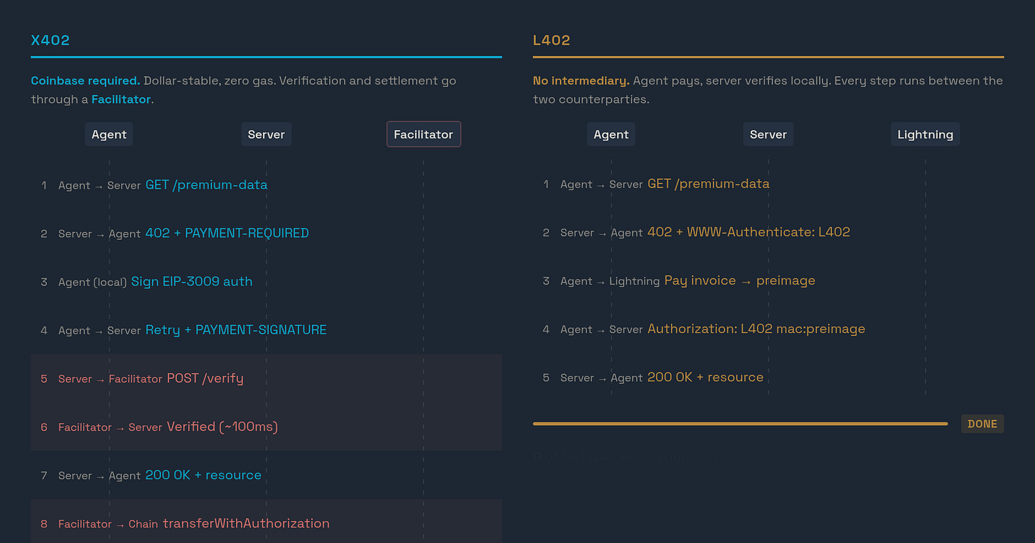 On the other side of this field, a different kind of infrastructure exists: Lightning, Nostr, Cashu—protocols where an agent can generate a keypair, receive funds, and transact without a bank account, a legal entity, a corporate identity, or a human in the loop.